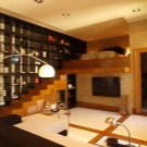 - في الطابق الأرضي ، يمكنك إنشاء منطقة ترفيهية, تتكون من أريكة ناعمة أو كرسيين وطاولة قهوة. ستسمح لك هذه الأفكار بالتعافي بعد يوم شاق في العمل أو قضاء بعض الوقت في صحبة جيدة. في الوقت نفسه ، لن تكون العلية واضحة ، وستكون الغرفة غرفة معيشة كاملة..