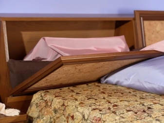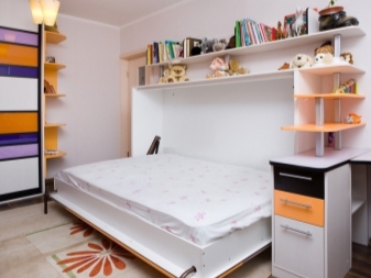 - مستلق عموديًا من خزانة الملابس. يمكن أن تحتوي مجموعات الأثاث هذه على سريرين وطاولات وأرفف مدمجة بجانب السرير..