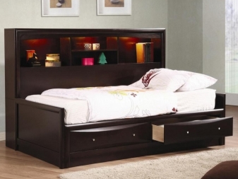 يسعى المصنعون لدمج أكبر عدد ممكن من الوظائف الإضافية في النموذج بحيث يكون مكان النوم أصليًا ومريحًا. لتوفير الراحة في التخزين ، يمكن تركيب الأرفف والأدراج في الإطار. مواقع الرفوف: