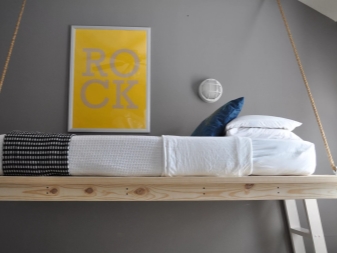 - سرير معلق. منصات خشبية مع مراتب ، تطفو تحت السقف ، مثبتة على حبال أو سلاسل ، تفاجئ بتصميمها الأصلي ، وراحتها في مرتبة عريضة عالية الجودة ، التصميم بسيط وموثوق ، السرير يمكن أن يهدئك للنوم. سوف يروق النموذج للنسخ الأصلية ، لكن الأمر يستحق النظر في أوجه القصور الواضحة فيه. إذا نمت معًا ، فستكون هناك حركة واحدة مهملة – وسيكون شخص ما على الأرض. ليس من المريح جدًا الصعود والنزول.