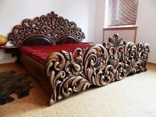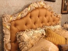 - سرير ملكي. يمكن صنع نماذج النخبة على شكل سرير ملكي. حجم كينغ من 2 متر عرض ، ميزتها المميزة هي لوح أمامي مرتفع ، مبطن بالمخمل أو الجلد. مميزات موديلات VIP: إطار مصنوع من خشب الزان أو الصنوبر أو البتولا المصمت الطبيعي ، لوح رأس مبطن عالي مصنوع من الجلد أو القماش وعناصر منحوتة.