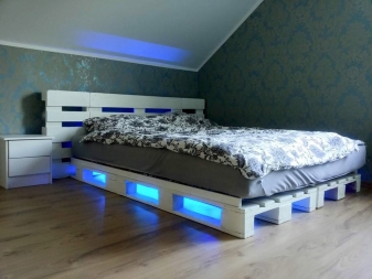 - من الأفكار الأصلية التي يمكن أن تقلل من تكلفة السرير استخدام القاع من المنصات, يمكن أن يبدو هذا الخيار ممتعًا من الناحية الجمالية إذا كانت المنصات مطلية ومضاءة. يبلغ حجم البليت 80 سم في 1.2 متر ويكلف أكثر بقليل من 200 روبل. لأسفل السرير المزدوج ، 4 قطع مفيدة.