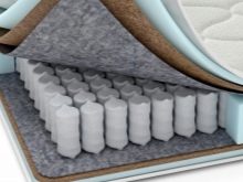 - الينابيع المستقلة في حزمة منفصلة, مثل هذا السطح لن يصدر صريرًا. يعطي التوزيع المنتظم للحمل الخصائص التشريحية للسطح. طبقات المنتج: اللاتكس ، الرغوة ، جوز الهند والينابيع في عبوات منفصلة.