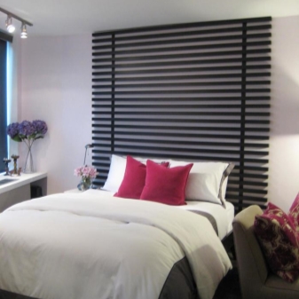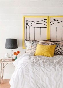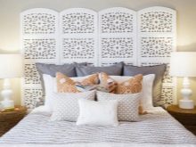 - من السهل القيام بلوح الرأس بيديك مصنوع من الخشب والزجاج والمرايا وحتى القماش ، وليس بالضرورة أن يكون هذا الديكور مفيدًا ، يمكنك فقط تزيين الغرفة به.