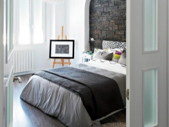 - من الحجر. يعد اللوح الأمامي المصنوع من الحجر أو الفسيفساء أن يكون اللكنة الرئيسية في غرفة النوم ، حتى مع وجود لوحة ألوان صامتة. نسيجها ونمطها ، الفسيفساء التي يمكن أن تخلقها الأشياء الصغيرة ، ملفتة للنظر. بطبيعة الحال ، فإن اللوح الأمامي الحجري بالكامل غريب على الأقل وغير عملي..