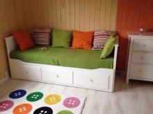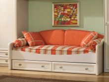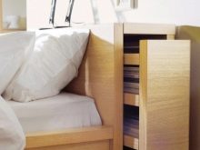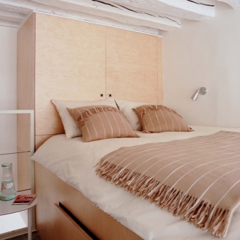 فكرة تصميم داخلي عملية بنفس القدر هي سرير به درج مدمج أو خزانة أدراج منفصلة على ظهر السرير. اليوم يمكنك شراء أنظمة كاملة جاهزة ، حيث يتم وضع كل من السرير وخزانة الملابس بأكملها تحتها وخلف ظهرها..