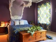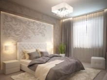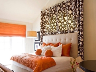 يمكن استكمال اللوح الأمامي المرتفع النهائي بستائر معلقة خلفه ، والتي ستكون بمثابة عنصر لتقسيم مساحة غرفة النوم.