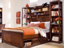 - ظهر السرير مع الرفوف يمكن تصنيفها على أنها أثاث خشبي بالرغم من أنها غالبًا ما تكون مصنوعة من الخشب المضغوط. تتمتع هذه اللوح الأمامي بوظيفة واسعة: فهي تضع مزاجًا خاصًا للغرفة وتسمح لك بترتيب الحلي على الرفوف. إذا كان اللوح الأمامي يحتوي على خزانة ذات أدراج أو أرفف مع أبواب مدمجة ، فيمكن إخفاء الأشياء الأكبر مثل بياضات السرير فيها..