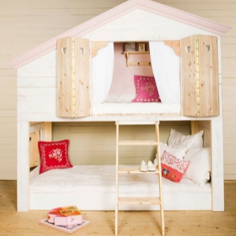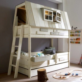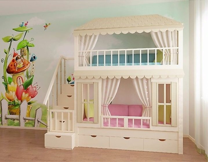 غالبًا ما يكون حجم الحضانة متواضعًا جدًا ، ومشكلة تنظيم المكان حادة للغاية. سيساعد منزل سرير بطابقين في حل المشكلة.
