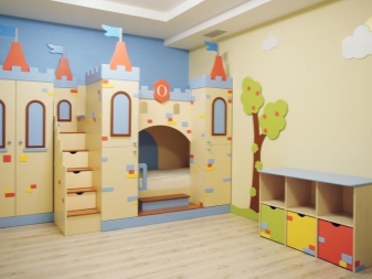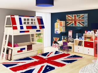 - تحسين الفضاء. التصميم الأصلي الذي يشتمل على مكان للنوم ومنطقة دراسة ومساحة تخزين للألعاب والملابس يسمح لك باستخدام الأمتار المربعة من الحضانة بأقصى فائدة.
