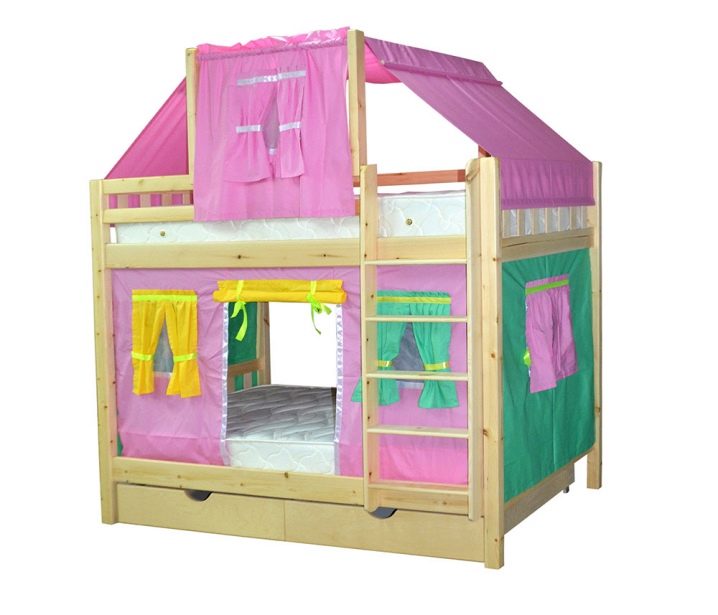 منازل الأسرة بطابقين متنوعة للغاية. يمنح هذا النموذج مجالًا للخيال الخيالي للأطفال والبالغين في تنظيم الفضاء الفردي.. تخلق الاختلافات المختلفة في سرير الأطفال بيئة منفصلة تمامًا لطفلك. على سبيل المثال ، إذا قمت فقط بتغطية بابي المنزل المؤقت ، فسيشعر الطفل بالخصوصية والحماية..