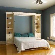 تتميز الشقق الحديثة بمساحة صغيرة لا تسمح بوضع الكثير من الأثاث بداخلها. لذلك ، يحاول العديد من سكان هذه المنازل تحسين المساحة قدر الإمكان. طريقة واحدة للقيام بذلك بشكل مريح هي استخدام الأثاث المدمج. ويشمل أسرة قابلة للتحويل, والتي تتناسب تمامًا مع أي تصميم داخلي تقريبًا. يطوى الهيكل بسرعة ، ويتحول إلى قطعة أثاث غير واضحة.
