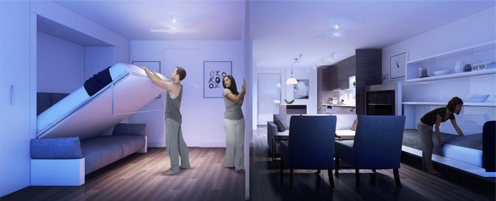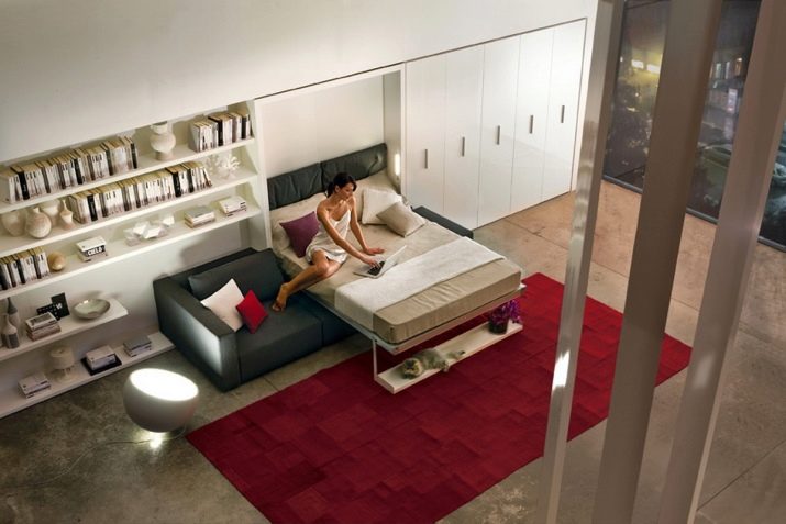 يمكن أيضًا تركيب أسرّة من هذا النوع في الغرف الأخرى. كل هذا يتوقف على الغرض أو الوظيفة. لذلك ، على سبيل المثال ، إذا قام العديد من الضيوف بزيارتك في بعض الأحيان ، يمكنك استكمال غرفة المعيشة بقطعة الأثاث هذه. في نفس الوقت ، عند طيها ، سيتم استخدام الآلية كخزانة أو أرفف..