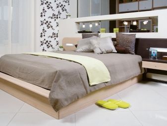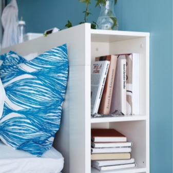 إذا تحدثنا عن أرفف مفتوحة على رأس السرير, بعد ذلك سيسمحون لك بوضع عناصر الديكور – اللوحات والصور الفوتوغرافية والتذكيرات المكتوبة على قطعة من الورق. يمكن أن يحل لوح رأس كامل مع أرفف مدمجة أو أدراج مغطاة محل خزانة ذات أدراج. يمكن أن يؤدي تنسيق التخزين الجديد هذا إلى التخلص تمامًا من طاولات السرير الموجودة على جوانب السرير أو توسيع وظائفها..