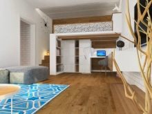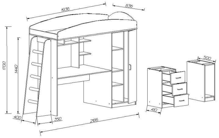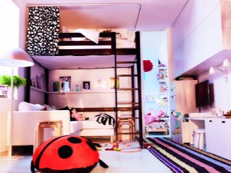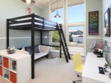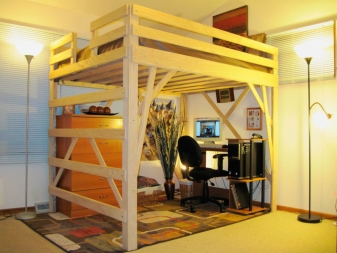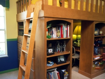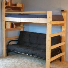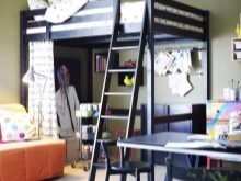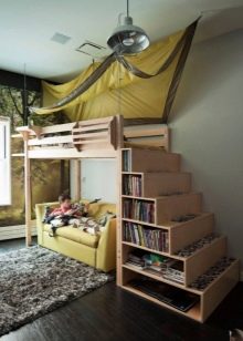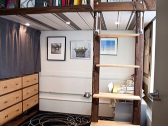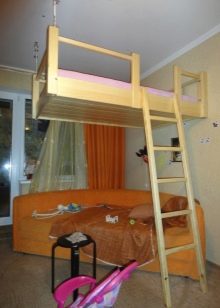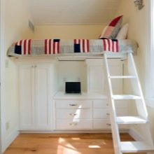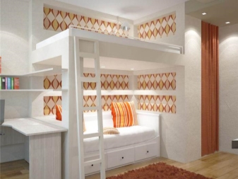 - تصميم متعدد الوظائف. سيساعدك السرير العلوي على تنظيم المساحة بشكل صحيح بحيث لا يتداخل مكان النوم مع هوايتك أثناء النهار. يمكنك إنشاء منطقة عمل أسفل السرير أو بناء أرفف كتب أو وضع خزانة ملابس..