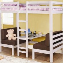 عند اختيار نموذج ، من الضروري مراعاة عمر الشخص الذي سيكون في السرير العلوي. بالنسبة للأطفال الصغار ، تحتاج إلى اختيار نموذج مضغوط يقع على ارتفاع 1.2 متر. بالنسبة للمراهق ، ستحتاج إلى كرسي استلقاء كبير يتم تثبيته على ارتفاع 1.7 متر.