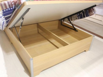 تختلف أسرة الرفع في اتجاه الفتح: يمكن أن يتأرجح سرير الكتاب البالغ مفتوحًا إلى الجانب (من اليمين إلى اليسار ، على سبيل المثال) أو يفتح عند سفح السرير إلى اللوح الأمامي. تقريبًا جميع طرز الأسرة المزودة بآلية رفع لتقويم العظام ، أي أنها ذات قاع مضلع مع شرائح بحجم 24 قطعة أو أكثر (حسب عرض الرصيف). القاعدة لها إطار معدني وألواح بتولا مرنة بعرض 6-7 سم.