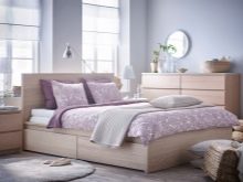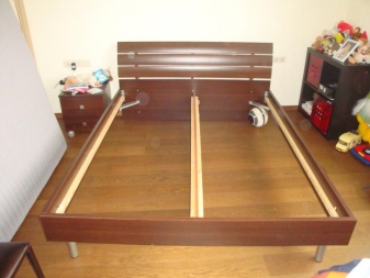 ايكيا لديها سرير مزدوج مع مصعد – موديل مالم بثلاثة ألوان. هيكل السرير مصنوع من اللوح ، والشرائح السفلية مصنوعة من خشب البتولا وقشرة الزان ، والجزء السفلي من المعدن (مثل جميع الأسرة المماثلة).