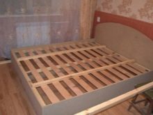من الضروري رسم وقطع لوح من الألواح الخشبية كما يلي: قص فاصل بارتفاع 20 سم وتثبيته بين إطار السرير المُجمَّع مسبقًا. اصنع قاعدة تقويم العظام من الخشب الرقائقي (بدلاً من ذلك ، يمكنك أن تأخذ ورقة من خشب البتولا المصمت): يجب ألا يتجاوز سمك الصفيحة 20 مم ، والعرض – حوالي 7-8 سم ، ويجب أن تكون جميع الصفائح بنفس الحجم.