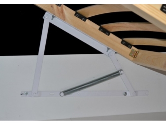 الآلية مزودة بزنبركات مسؤولة عن رفع وخفض القاعدة. نظام الزنبرك ليس متينًا: عمر خدمته 3-5 سنوات ، وبعد ذلك يجب استبداله بالكامل. أثناء تشغيل السرير ، تبلى الينابيع بسرعة: فهي تتمدد بعد كل فتح وإغلاق. آلية الزنبرك لسرير الرفع مطلوبة بسبب انخفاض سعرها.