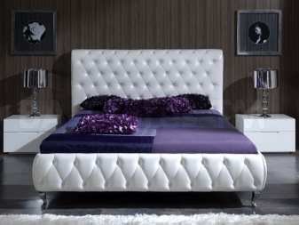 السرير ذو اللوح الأمامي المصنوع من مادة ناعمة ، بالإضافة إلى كونه جماليًا ، له أيضًا وظيفة عملية. يمكنك الاتكاء على هذا الظهر أثناء قراءة كتاب أو الاستمتاع بفنجان من قهوة الصباح. وإذا كان هناك أطفال في المنزل غالبًا ما يصطدمون بغرفة نومك ، فإن اللمسات النهائية الناعمة ستضمن سلامتهم من الضربات المحتملة. عادة ، يتم استخدام الجلد الطبيعي أو الاصطناعي للتنجيد في مثل هذه الحالات..