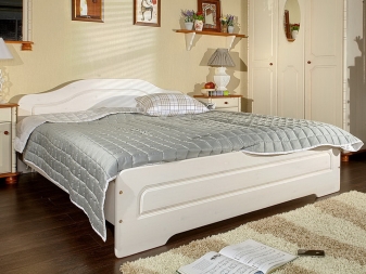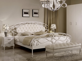 - غزارة – ضخامة. على الرغم من الشعور بالخفة والتهوية التي ينتجها الأثاث الأبيض ، إلا أنه قد يبدو مرهقًا في ظل ظروف معينة. هذا ممكن إذا اخترت سريرًا به لوح أمامي ضخم منحوت لغرفة صغيرة. يبدو هذا الأثاث أكثر تناسقًا في غرف النوم الكبيرة. بالنسبة للغرف الصغيرة ، فإن المزيد من الخيارات جيدة التهوية مناسبة. يمكن أن يكون سريرًا من الحديد المطاوع بظهر رقيق أنيق أو نموذج بأسلوب لاكوني حديث..
