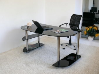 - زجاج. اعتاد الجميع على حقيقة أن الزجاج مادة هشة نوعًا ما ، ولكنه يستخدم أيضًا كسطح طاولة لإنتاج نماذج الطاولات الحديثة. عيبه هو أن بصمات الأصابع تبقى على الأسطح الزجاجية ، لذلك يجب فرك مثل هذه الطاولة في كل مرة تنتهي فيها من العمل..