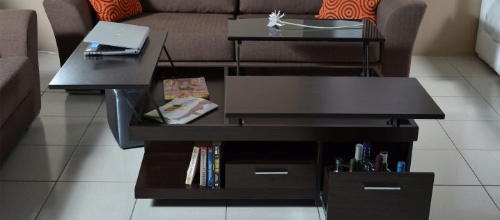 بالنسبة لشقق الاستوديو ، سيكون الخيار الممتاز هو نموذج متغير لطاولة قهوة ، عندما تتكشف في حركة واحدة ، تحصل على مكان عمل كامل.