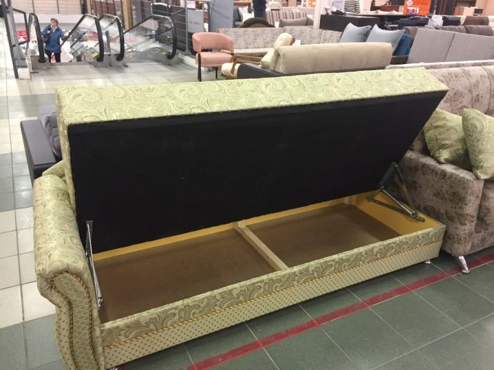هذه النماذج مريحة لقضاء الوقت أثناء النهار. بفضل مسند الظهر المبطن ، يمكنك الجلوس بشكل مريح أثناء مشاهدة أفلامك المفضلة أو قراءة مجلة أزياء. هناك مثل هذه الخيارات مع الأدراج ، والتي تساعد على تخزين الأشياء بسهولة..