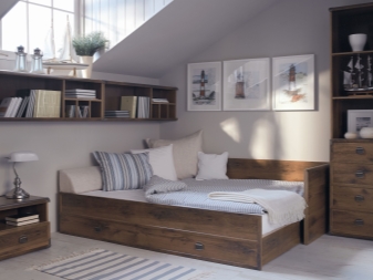هذه النماذج مدمجة من حيث معاييرها. ومع ذلك ، هذا لا يمنعهم من العمل كأريكة في الصالة أو كسرير في غرفة النوم. في الحالة الأخيرة ، من المهم جدًا اختيار مرتبة عالية الجودة لتقويم العظام. تتوفر خيارات مماثلة مع عدة أنواع من الإطارات: