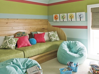 - تحسين الفضاء – ينطبق هذا بشكل خاص على غرف الأطفال الصغيرة أو الشقة المكونة من غرفة واحدة عندما لا يكون للطفل غرفته الخاصة. سوف تساعد الأريكة أو الأريكة الصغيرة في تحديد المساحة ، مما يترك مساحة خالية كبيرة للألعاب النهارية ، وفي الليل تتحول إلى مكان للنوم.
