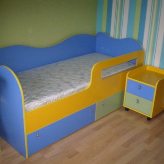 - نموذج منزلق أكثر ملاءمة للاستخدام. على سبيل المثال ، في حين أن طفلك لا يزال صغيرًا جدًا (حتى سن 3 سنوات) ، لا يجوز لك فتحه ، لأنه حتى في شكل غير مفكك ستكون هناك مساحة كافية لراحة الطفل. بالإضافة إلى ذلك ، سيوفر التصميم المدمج المطوي مساحة للألعاب النشطة والترفيه. عندما يكبر الطفل قليلاً ، ستضعه على وسادة واحدة أولاً ، ثم على اثنتين. أي ، بعد أن أنفقت المال مرة واحدة على شراء أثاث الحضانة ، يمكنك توفيرها حتى يكبر الطفل وتحتاج إلى شراء سرير بالغ كامل له..