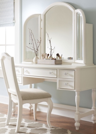 لوحة ألوان كراسي منضدة الزينة لا حدود لها تقريبًا. يمكن أن تكون من أي لون – من الأبيض إلى الأسود ، أو أحادية اللون أو مطبوعة. يمكن أن يكون الإطار والمقعد بنفس اللون أو بدرجات متباينة.