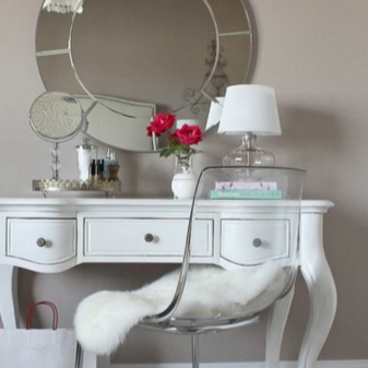 بدلاً من الكراسي ، يمكنك استخدام كرسي بدوار أو كرسي أو كرسي عثماني أو مقعد كمقعد لطاولات الزينة التي لها نفس الوظائف. يتم اختيار قطع الأثاث هذه وفقًا لقواعد مماثلة لاختيار الكراسي..
