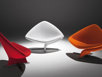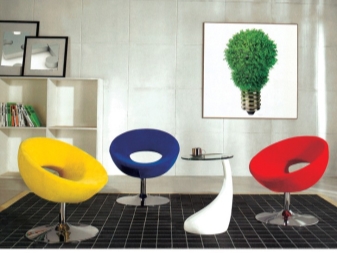 - يقدم المصنعون نماذج أصلية على شكل زجاج أو أزهار. تحتوي بعض الكراسي الدوارة ذات الأرجل الواحدة على مسند قدم قابل للسحب وآلية تأرجح. غالبًا ما يتم تقديم هذه المنتجات لغرفة المعيشة بالجلد ، كما أن الموديلات مثالية للمكتب والشرفة الأرضية ودور الحضانة.