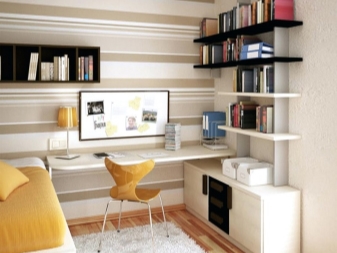 - تعد جزيرة العمل المريحة حلاً جيدًا لغرفة صغيرة: يتم إنشاء سطح طاولة خاص ولوحة جانبية وحافة أفعوانية مع أرفف ببساطة للإبداع وتنظيم مساحة العمل ؛