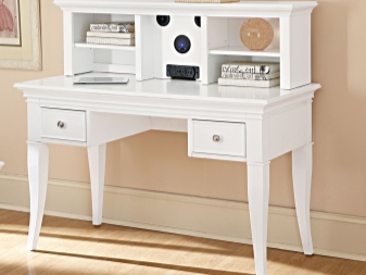 مكاتب الكتابة البيضاء هي حل تصميم مذهل. هذا الأثاث ملحوظ في أي ديكور داخلي وهو مناسب بشكل خاص في الغرف التي تفتقر إلى الإضاءة والبقع البيضاء..