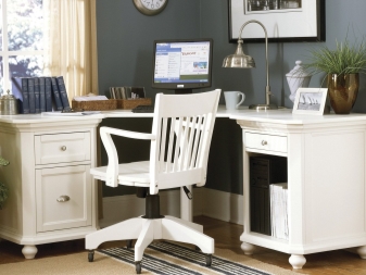 تتناسب أجهزة سطح المكتب البيضاء بشكل متناغم مع أنماط مختلفة ، إذا كان لديها تشطيب أو إدراج في ظل متباين. ومع ذلك ، ليست كل فكرة تصميم ناجحة ، لأن النغمة المتميزة ، جنبًا إلى جنب مع الألوان القاسية للوحة الألوان ، تفقد نبلها..