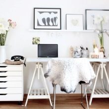 لفهم كيفية تركيب مكتب أبيض بنجاح في الجزء الداخلي للغرفة ، يمكنك الانتباه إلى أمثلة من المصممين ذوي الخبرة: