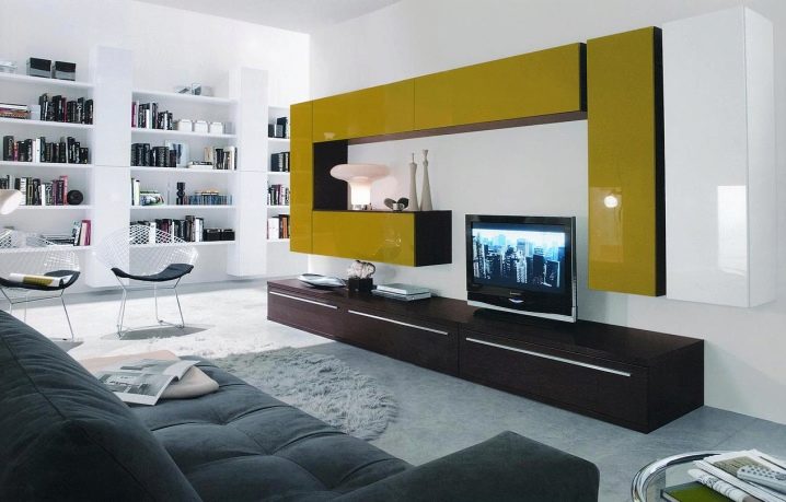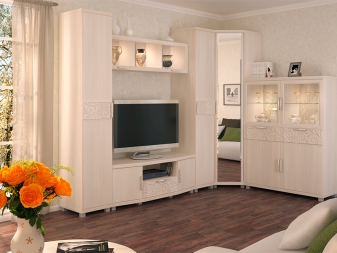 - معياري. هذه النماذج أنيقة وحديثة ، وبالتالي فهي تحظى بشعبية بين المشترين. تتمثل إحدى مزايا هذه السمة في القدرة على شراء عناصر الأثاث الضرورية فقط. يمكن تبديل الوحدات وإنشاء مجموعة أثاث فريدة للداخل. وفي حالة تلف أي جزء من الجدار أو كسره ، يمكن استبدال المكون بسهولة دون الحاجة إلى فك سماعة الرأس بالكامل..