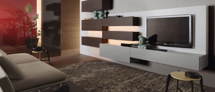 عند اختيار مجموعة أثاث ، يجب الانتباه إلى موقعها ، لأنه بالإضافة إلى مكونات الأرضية ، هناك عناصر مفصلية. بفضل التركيبة المختارة جيدًا لغرفة المعيشة ، يمكن تقسيم الغرفة بصريًا إلى عدة مناطق..