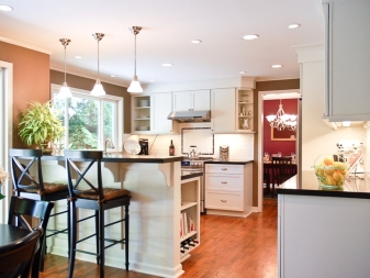 العديد منهم لديهم طاولة بار في المطبخ. بالنسبة لعدادات البار ، تعتبر الكراسي الخاصة مناسبة ، والتي تختلف في ارتفاعها – فهي أعلى من تلك العادية. للراحة ، تم تجهيز هذه الطرز بمسند للقدمين أو يمكن تعديل الارتفاع.