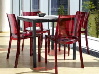 - بلاستيك. يجب دمج هذه الكراسي مع منضدة يمكن أن تكون مصنوعة من البلاستيك أو الزجاج. ستكون ميزة هذه النماذج هي خفتها وسهولة استخدامها وألوانها المختلفة. عند شراء مجموعة كاملة ، يمكن استخدام جزء فقط ، وبقية الكراسي سهلة التكديس ولا تشغل مساحة كبيرة. مثل هذا الأثاث ، خاصة إذا كان مصنوعًا من البلاستيك الشفاف ، هو هبة من السماء للمساحات الصغيرة..