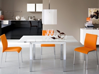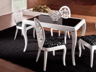 الكراسي مصنوعة من مجموعة متنوعة من المواد. عند اختيار الكراسي ، من الضروري مراعاة مادة الطاولة التي تم اختيارها من أجلها.