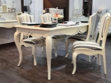 - كراسي المطبخ مع الطاولة هي الخيار الأخير عند شراء الأثاث. يجب دمجها مع واجهات المطبخ. بالنسبة للمطبخ ، سيكون من العملي شراء نماذج مصنوعة من البلاستيك والمعدن وغيرها من المواد التي يمكن غسلها. إذا كنت ترغب في حماية الكراسي الخاصة بك ، يمكنك خياطة أغطية خاصة لها ؛