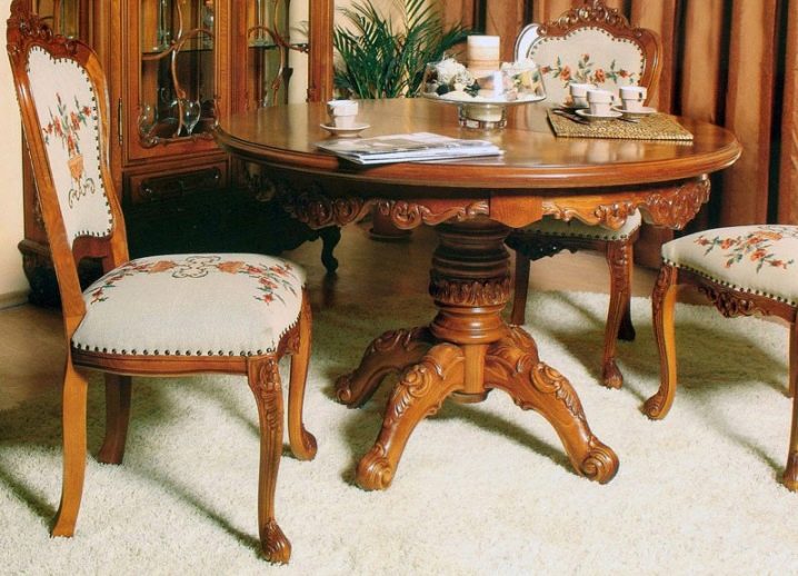 الكراسي الخشبية ، منمنمة في العصور القديمة ، لا تبدو أقل ثراءً وأصالة. يجب أن يكون هذا الأثاث مدعومًا بعناصر مناسبة في الداخل. على سبيل المثال ، يمكن أن تكون عناصر زخرفية بأسلوب قديم أو تاريخي..