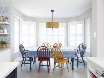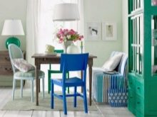 تتمتع الكراسي الخشبية الملونة بمظهر أصلي. في العديد من الأنماط ، يبدو هذا الأثاث عضويًا وجذابًا للغاية ، لكن لا يجب وضع مثل هذه النماذج في نفس المجموعات الساطعة ، وإلا ستصبح صورة الغرفة ملونة للغاية..