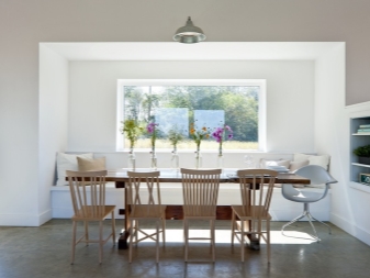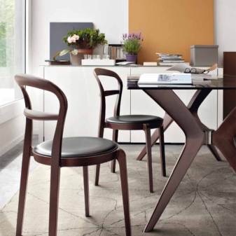 - لأسلوب رشيق عصري الكراسي الصغيرة والخفيفة الوزن مناسبة ، والتي لا تحتوي فقط على أشكال منتظمة ، ولكن أيضًا منحنية قليلاً. يجب أن تكون موجزة ولكن أنيقة. لا يستحق شراء خيارات طموحة للغاية للداخلية الحديثة..