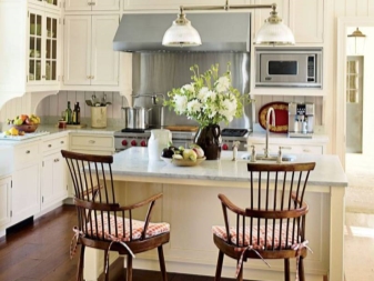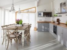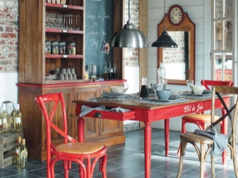 - أسلوب “العلية” العلية يمكن استكمالها بأمان بكراسي خشبية من أي نوع. يمكن أن يكون كلا من النماذج المصقولة الأنيقة والخشنة والمجهزة بشكل سيئ مثل الطراز الريفي..