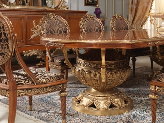 العينات المنحوتة لها سحر خاص. تبدو فاخرة ومكلفة حقًا. يمكن وضعها ليس فقط في مجموعة كلاسيكية ، ولكن أيضًا في مجموعة أكثر تفصيلاً (الباروك أو الروكوكو أو الإمبراطورية). بالنسبة للحالة الثانية ، فإن النماذج المنحوتة المزينة بالذهب أو الفضة مناسبة..